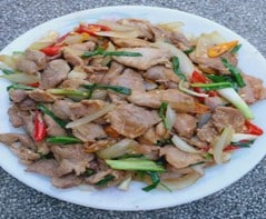 Menu 32 - Pad Prik m. Svinekød Stegt med chili, grøntsager, soyasauce og champignon | 95 kr. | |