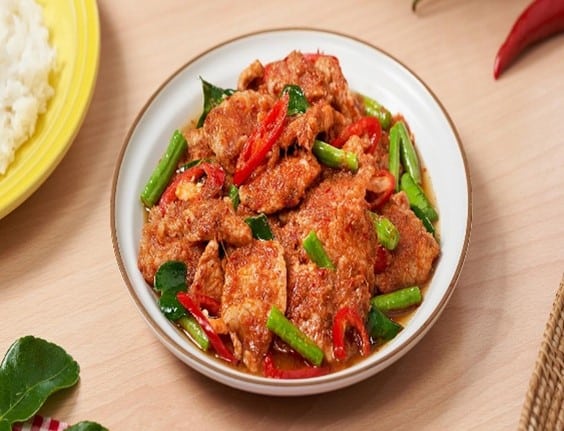 Menu 46 - Pad Prik Gaeng m. Kylling Stegt rød karry med kokosmælk og grøntsager. | 95 kr. | |