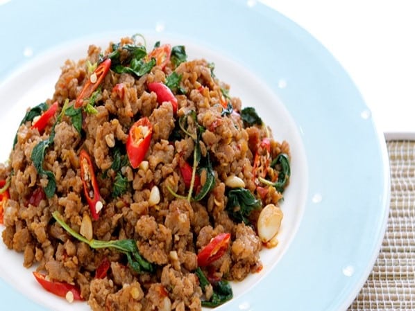 Menu 52 - Pad Kra Prao m. Svinekød Stegt med chili, hvidløj og basilikum. | 95 kr. | |