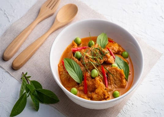 Menu 48 - Pad Prik Gaeng m. Oksekød Stegt rød karry med kokosmælk og grøntsager. | 95 kr. | |