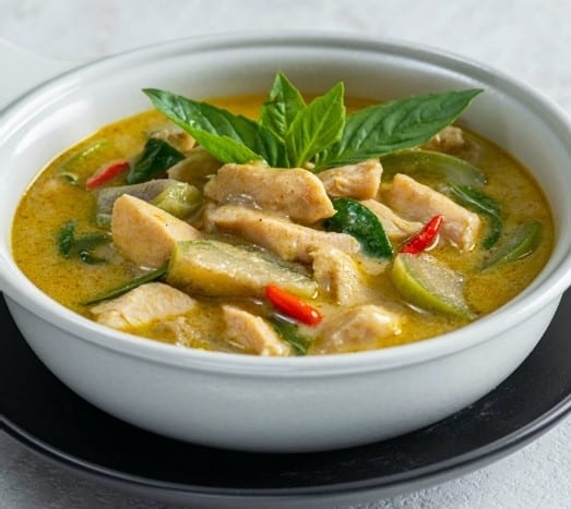Menu 65 - Gaeng Kheiw Wan m. Svinekød Grøn karry med kokosmælk, bambussked og auberginer. | 95 kr. | |