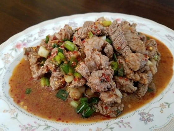 Menu 7 - Nam tok nue (Grillet oksekød salat med lime, chili, løj og mint) | 95 kr. | |